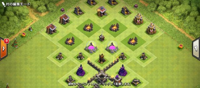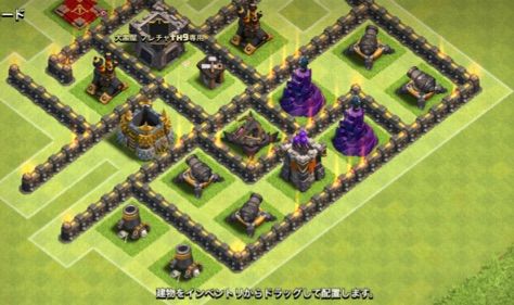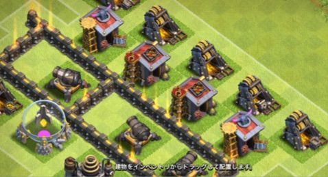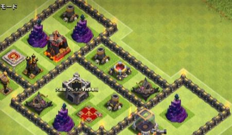 クラッシャーは高いからみんな建ててない説、今主流のアチャガゴ戦術対策に全くの無意味説が高いらしいので、ほとんどクラッシャー無し配置です。