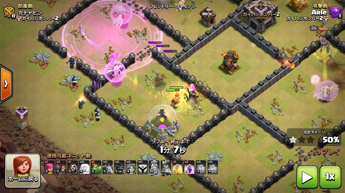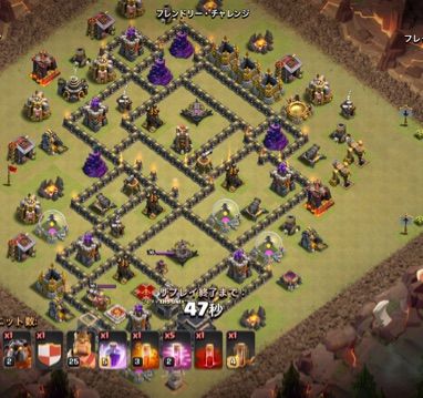 初期にできる戦術です。ババ大量ごり押しするやつです。壁で囲われてない、防衛施設がむき出しだったらこの戦術が強いですね。