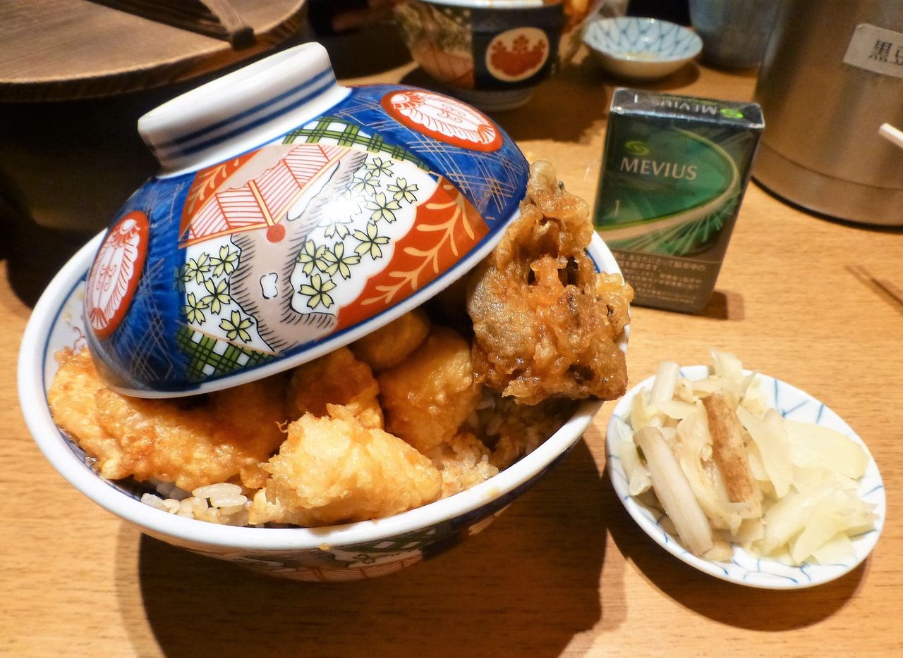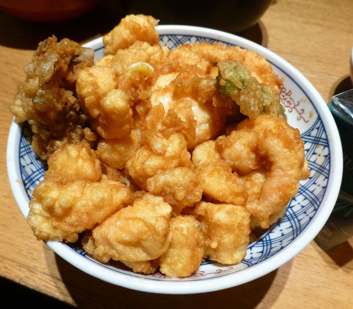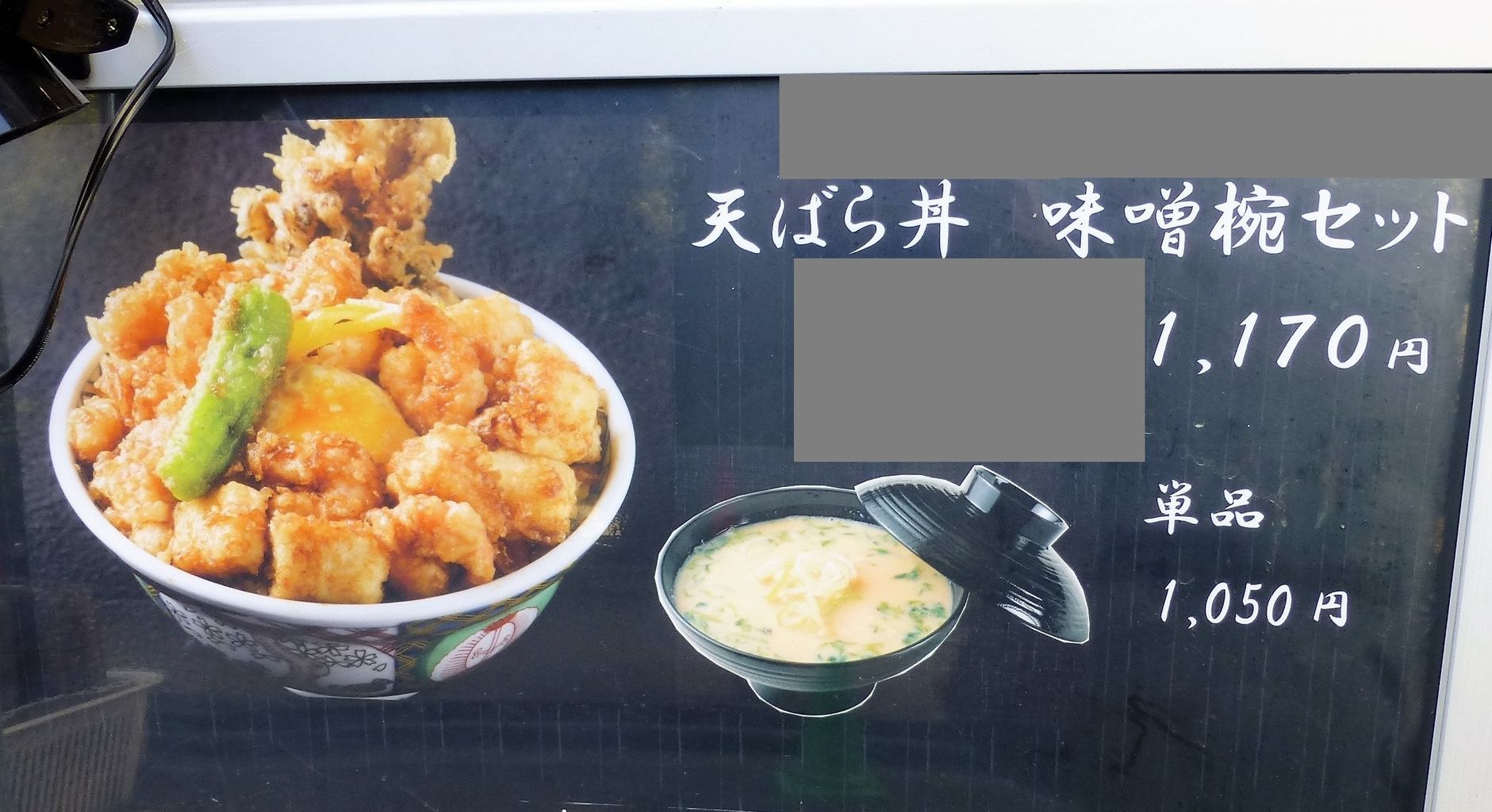 店員さんに、天ばら丼1,050円+大盛100円を注文。