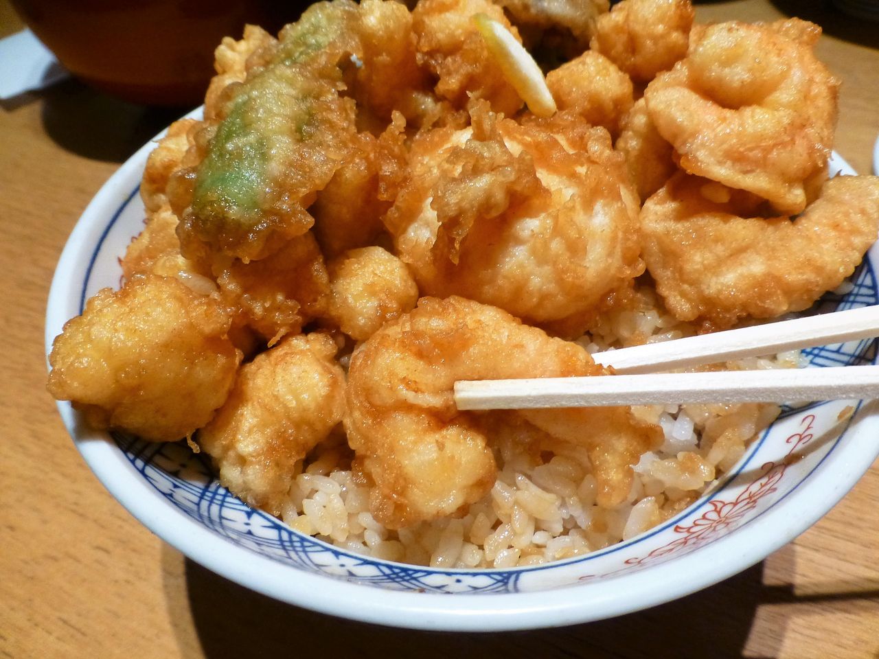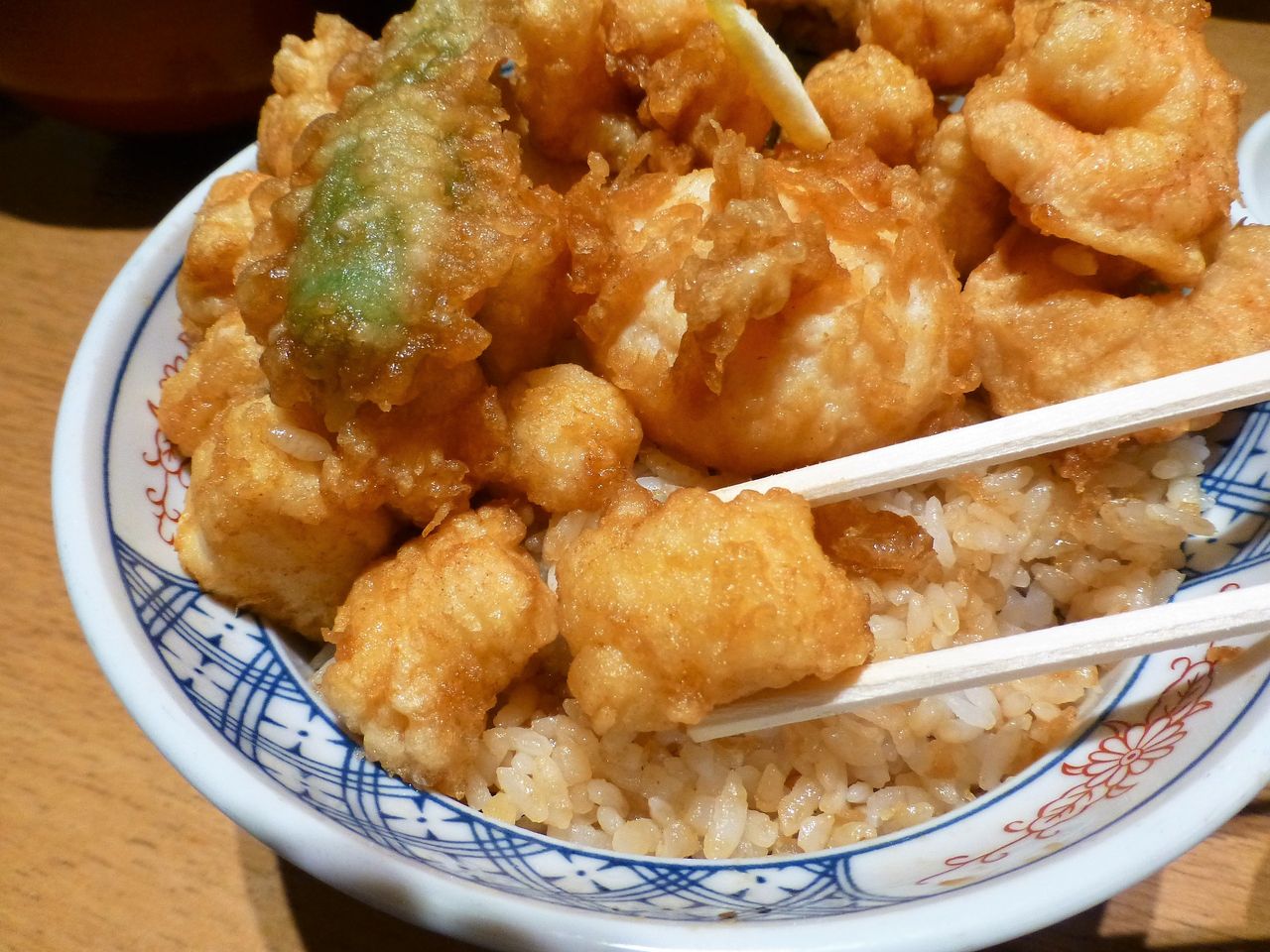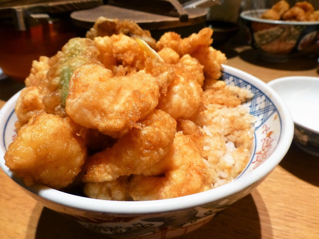 店員さんに、天ばら丼1,050円+大盛100円を注文。
