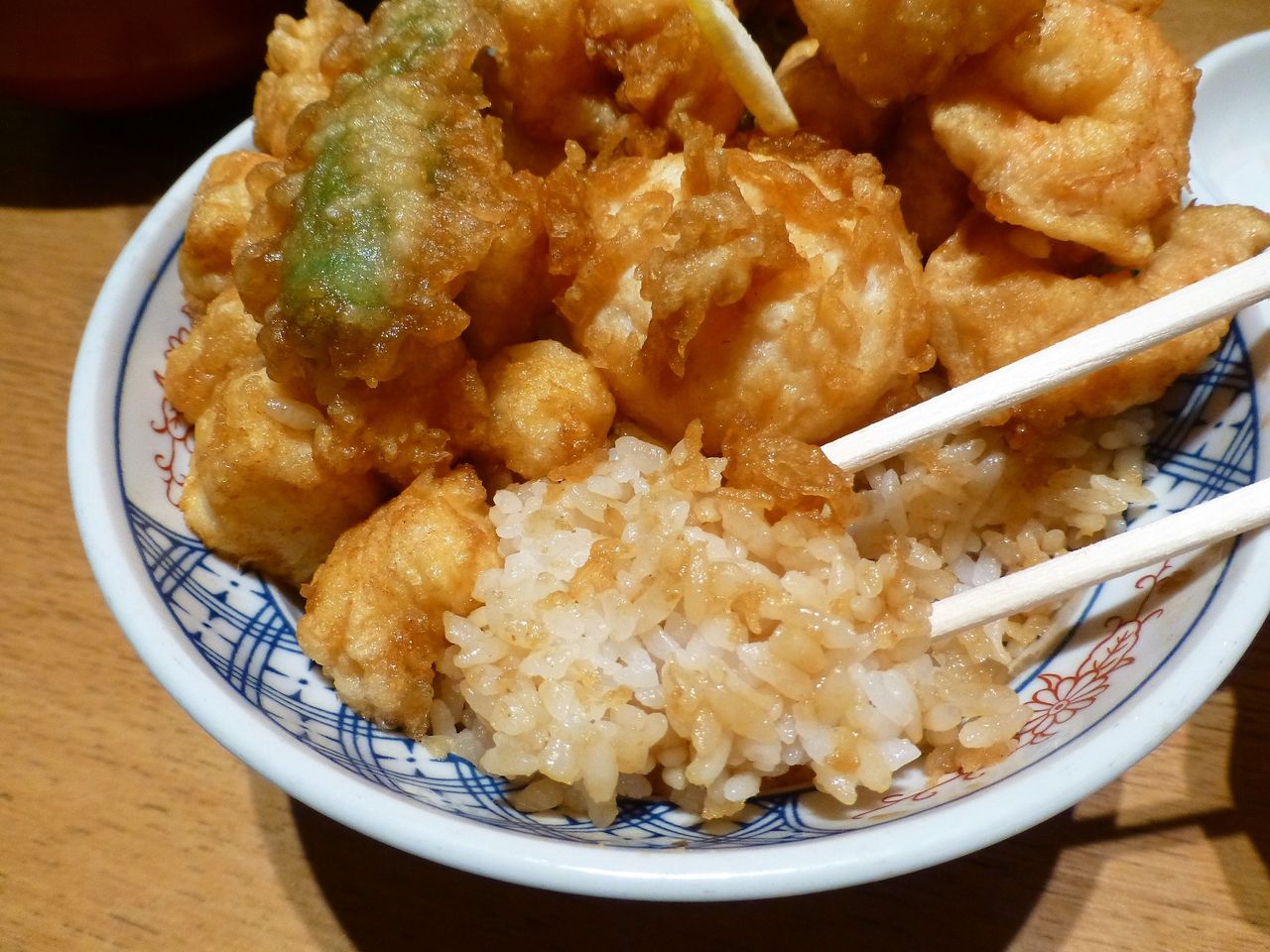 海老天の衣はしっとり、身はプリプリッと心地よい食感!