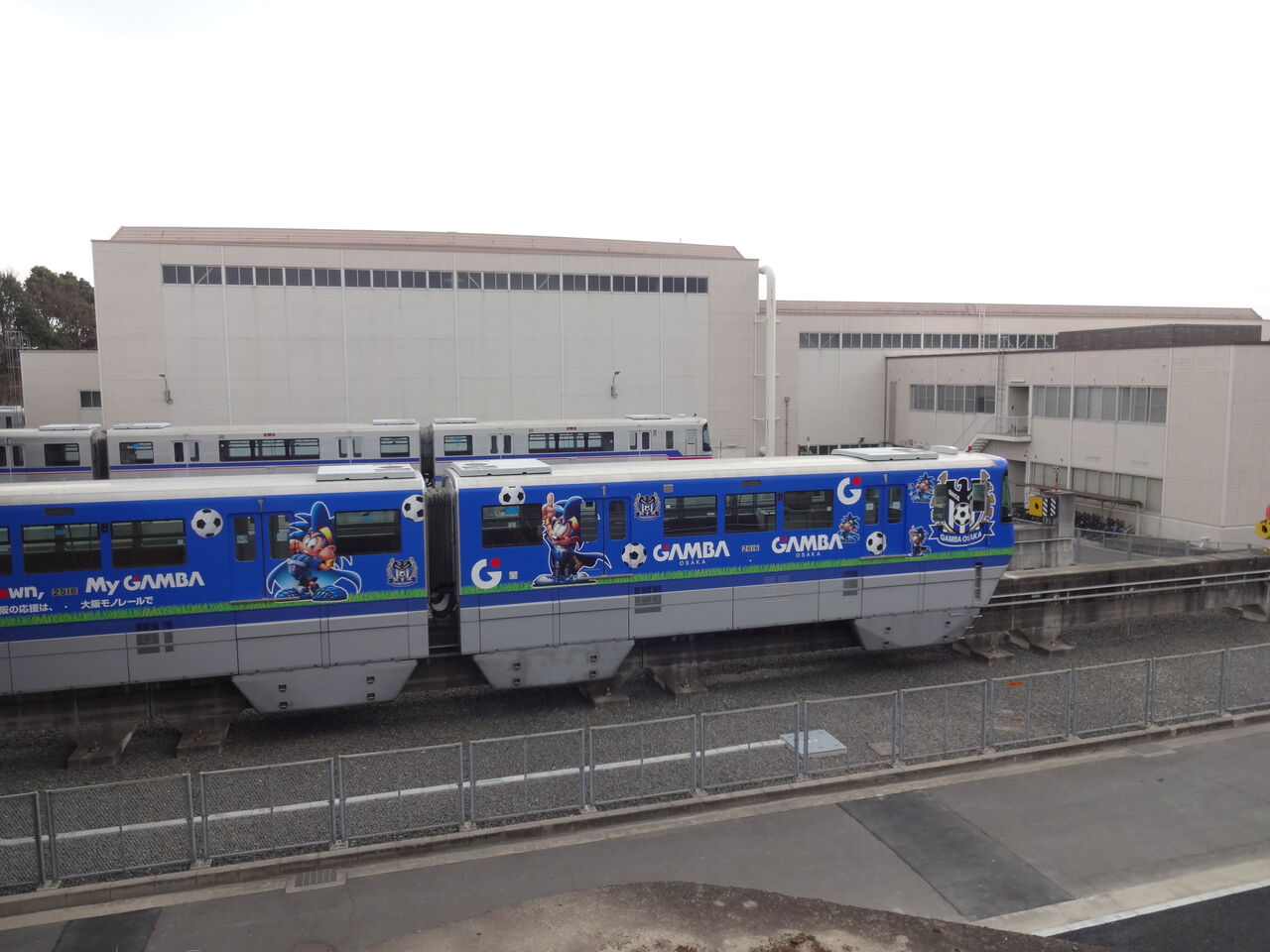 車庫にモノレールガンバ号止まってました。これに乗って パナスタに乗り込めたら最高の気分だろうね。これに乗ってパナスタに行けるとガンバが勝つ 都市伝説あります。これに乗るために一時間待ったサポがいるらしいがフェイクぽいな。