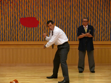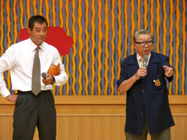 そこでうれし師匠が再登場だ。今度は二人で掛け合いになり、絶妙な間で野球の面白さを聞かせてくれる。まるで昔からのコンビのように息があっている。師匠がグラブとボールを持ってきて、会場の参加者を相手に石毛さんが実技の指導までしてくれた。
