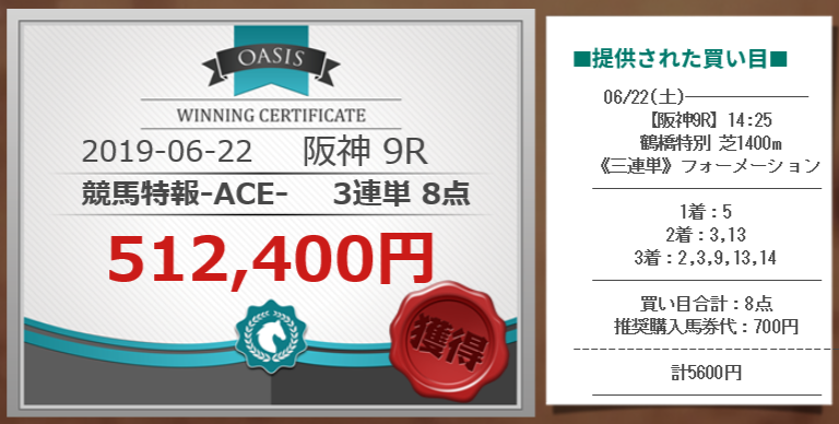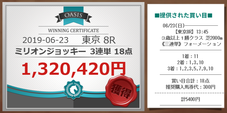 このOASISは高配当のレースを当たり前のようにバシバシと的中させております!