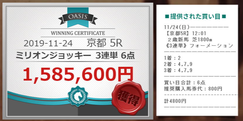 【BETA】推奨馬を軸にして「単勝」「馬連」「3連複」「3連単」と様々な馬券での素晴らしい的中報告を頂きました。