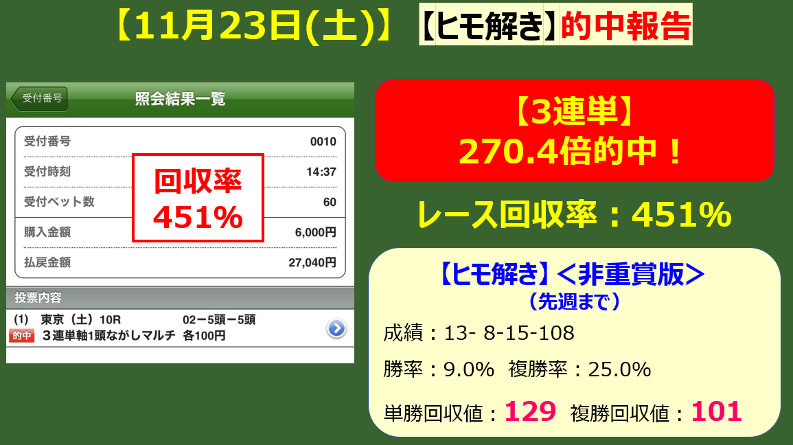 さらに上記以外でも23日(土)~24日(日)には払い戻し額が凄い予想が提供されておりました!