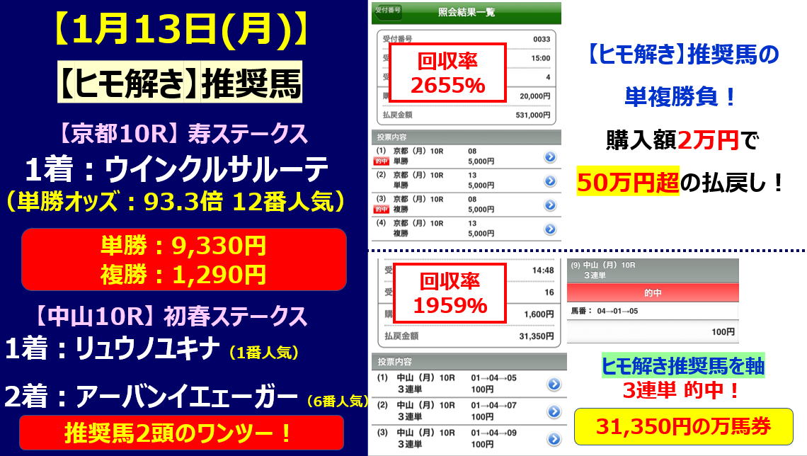50万円超の払い戻しの的中報告!