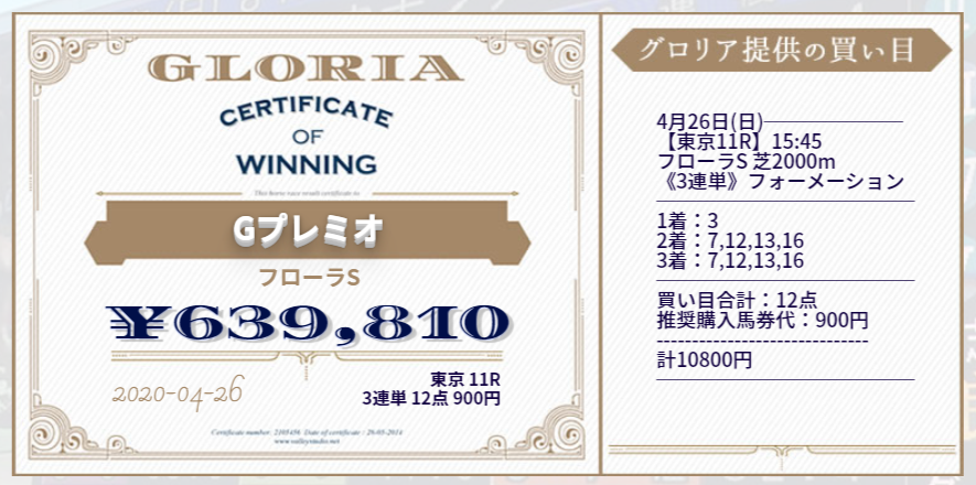 先週は予想が提供されたフローラステークスが大的中!