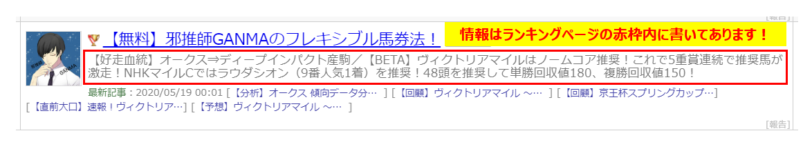 ※情報は「競馬ブログランキング」のここに記載されております!