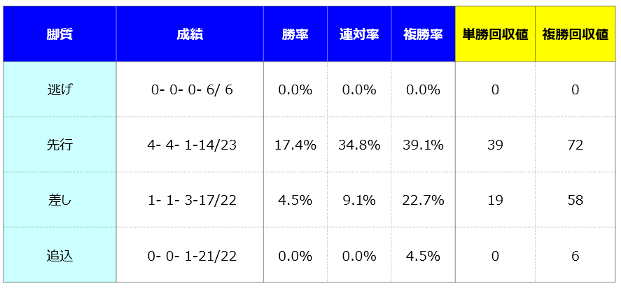 少頭数の大箱競馬場では強い馬だと思います。今回は内回りかつ多頭数です。好走は難しかったでしょうね。