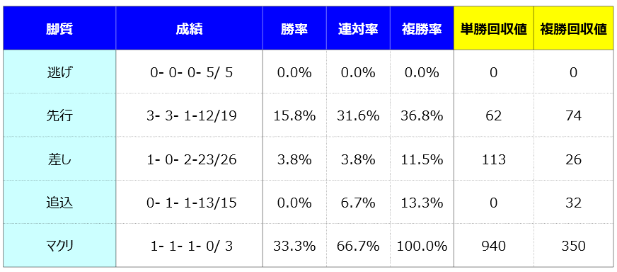 小倉競馬場も最終週であり、一気に差し馬に有利な馬場傾向に変わる可能性があります。そうなればこの馬は脚質的にも面白い存在と言えるでしょう。