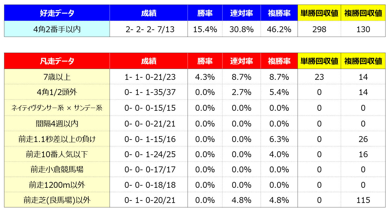 前につける競馬ができた時に成績が良い馬です。鞍上が積極的な騎乗をする菅原明良騎手というのも良いですね。人気を考えたら狙いたいところです。