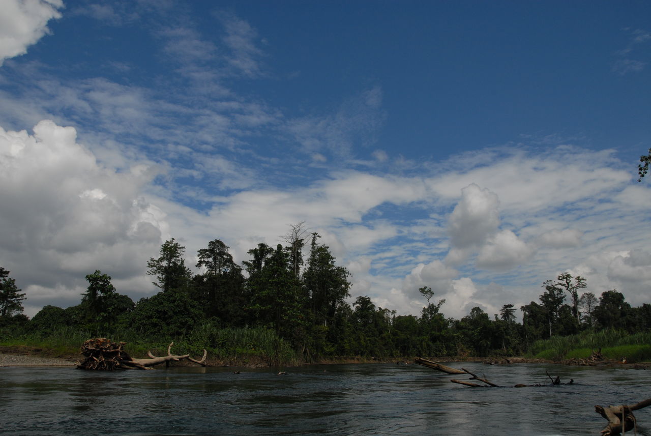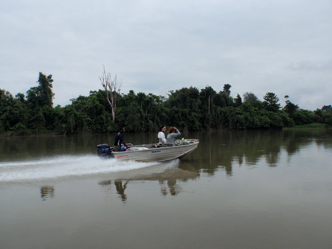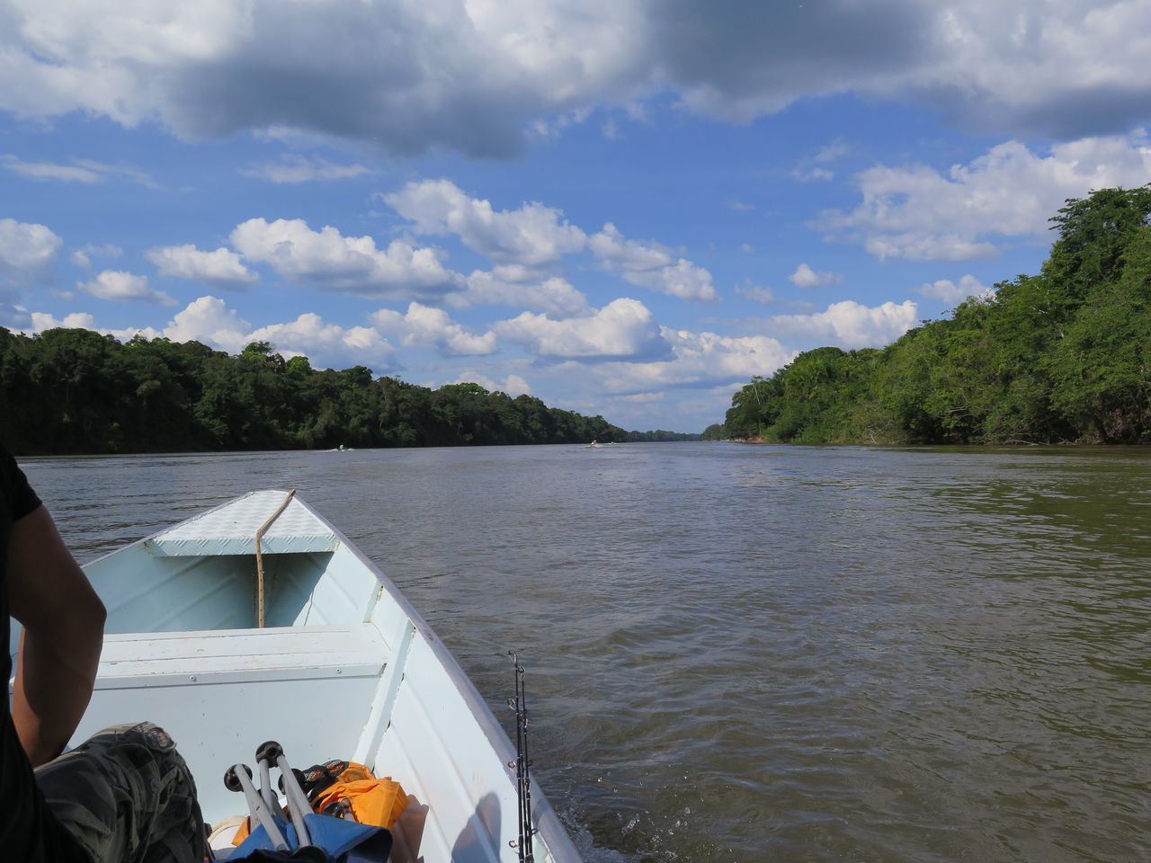 アポテリ村からはボートに分乗し、雄大な景色を眺めながら河を遡ること3時間・・・楽園は遠い。。。