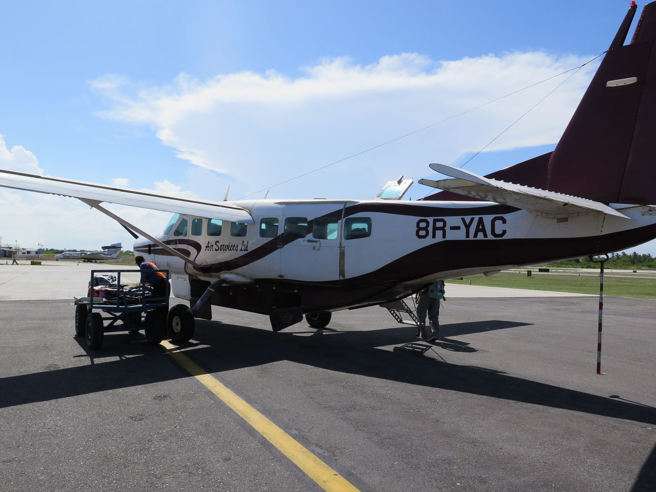 現地にてニューヨーク経由で参加の1名と合流、ローカル空港へ向かい、チャーター機の小型セスナにて秘境の入口であるアポテリ村へ向かう。