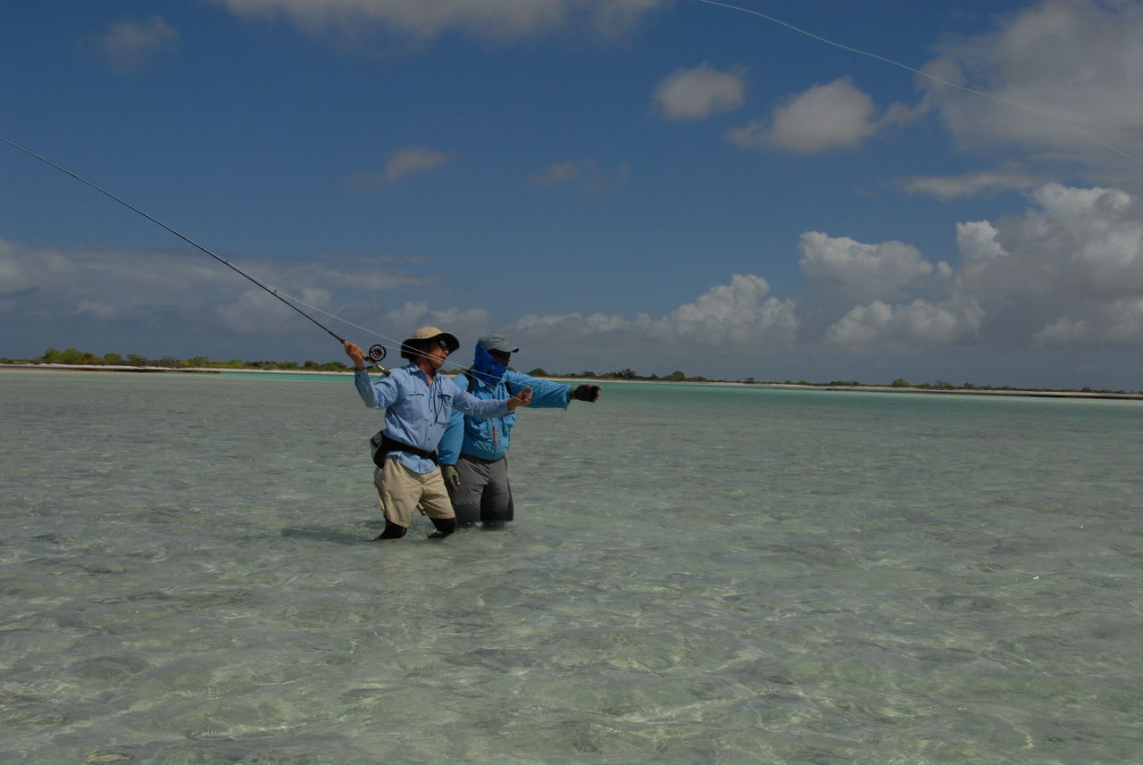 ガイドが先に入水し魚を誘導無事キャッチ成功!!!