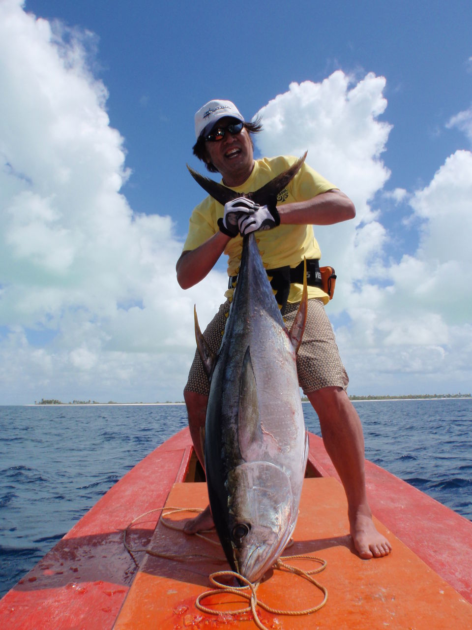 このツアーの首謀者、「ONEBITE☆ONEFISH」世界秘境冒険釣旅専門の旅行会社「(株)ウキウキ」代表取締役である鵜山さん。いつもお世話になっております!!