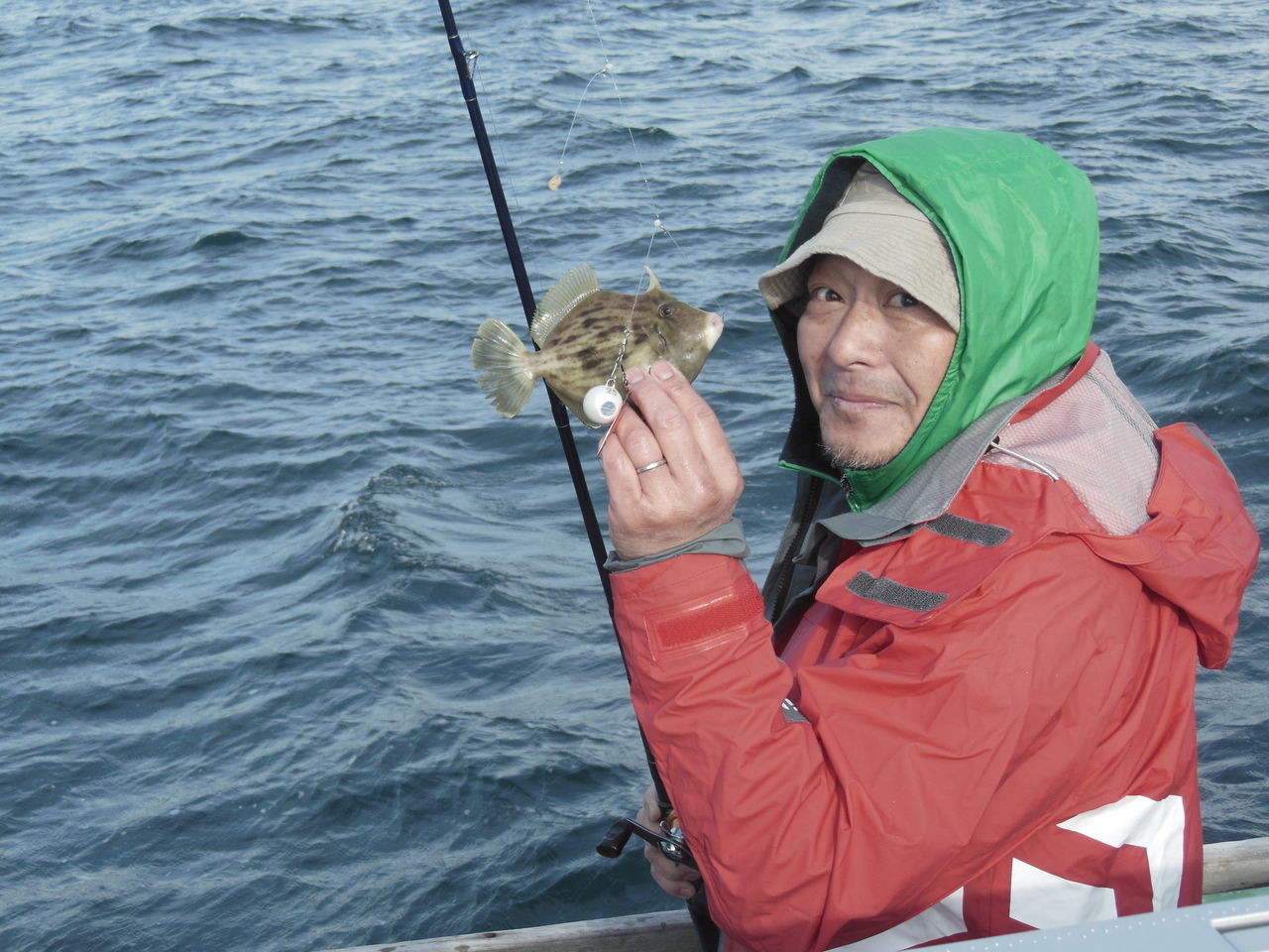 上げ潮に北風が当たり波立って海がガチャガチャした感じ、カワハギの活性も低くいのか、なかなか当たりません、スタートから大苦戦です。