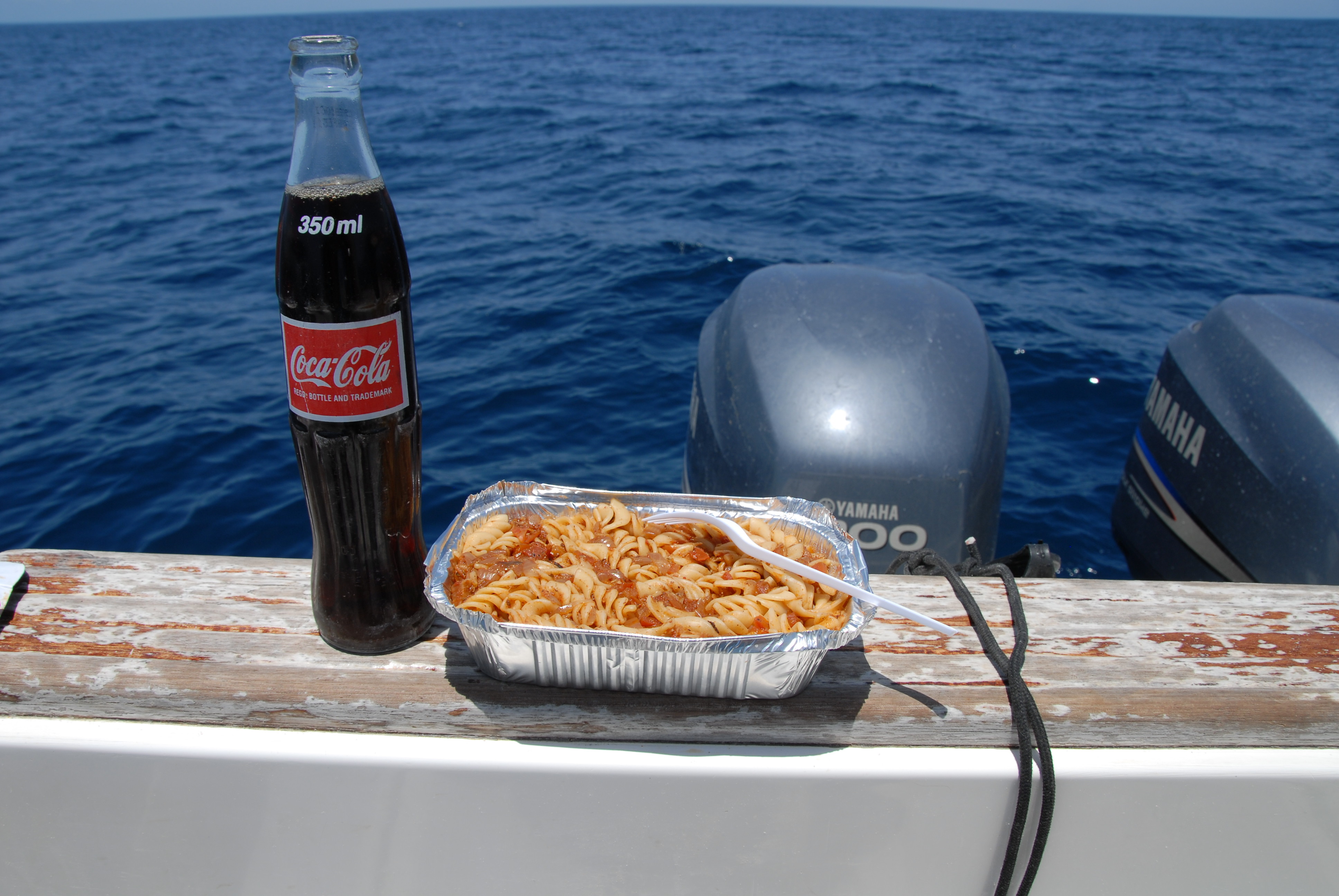 ランチは海上で!!パスタやサンドウィッチ!!美味です。