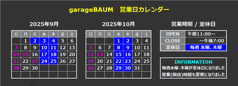9月2日(火)は都合により臨時休業とさせて頂きます。
