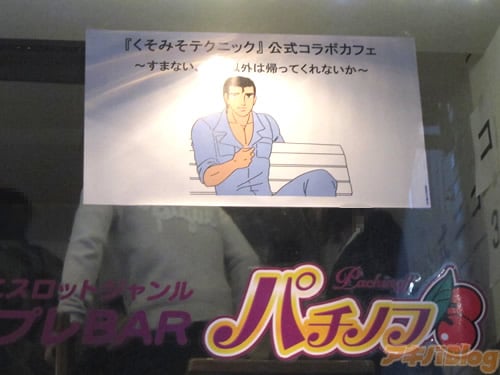 今回開催された『くそみそテクニック公式コラボカフェ』は、漫画『くそみそテクニック』の著作権管理を行っているという「IKDinternational」(IKDI)と、関連グッズを委託販売している「ホワイトキャンバス秋葉原本店」、萌え系パチンコスロットジャンルのコスプレバー「パチノフ」による共同開催だったみたいで、イベント告知ページは『阿部さんや道下くんのアレやコレをイメージしたフードにドリンク。くそみそグッズの展示&販売。ヤマジュン先生の作品展示などを予定。くそみそワールド全開で展開するとんでもないコラボが実現』になっていて、開店前から夜までずっと入店待ちの行列だったぽい。