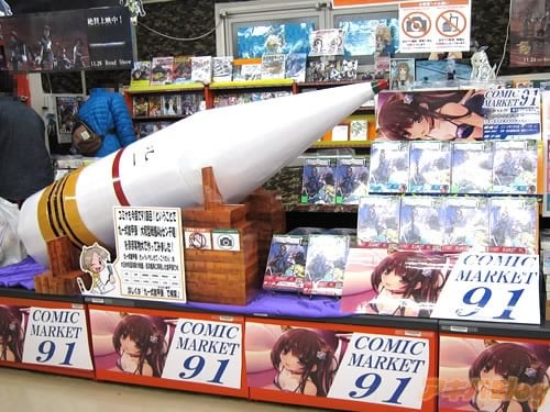 2016年冬コミ・コミックマーケット91の冊子版カタログ【AA】が3日に発売になった。アキバではメロン1号店がガンダムF91オマージュのPOPで展開し、とら秋葉原店Aは『コミケも今回で91回目!ということで九一式徹甲弾をほぼ実物大で作ってみました!』で、九一式徹甲弾を売り場に鎮座させてた。