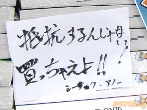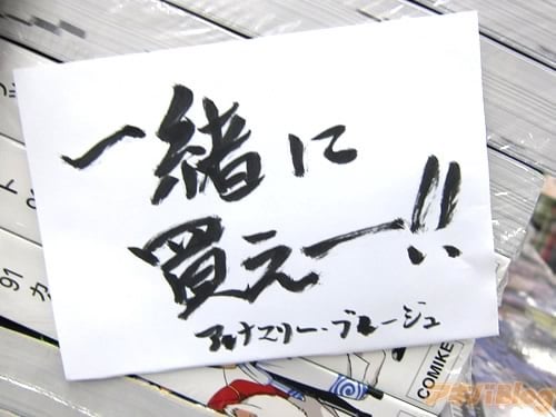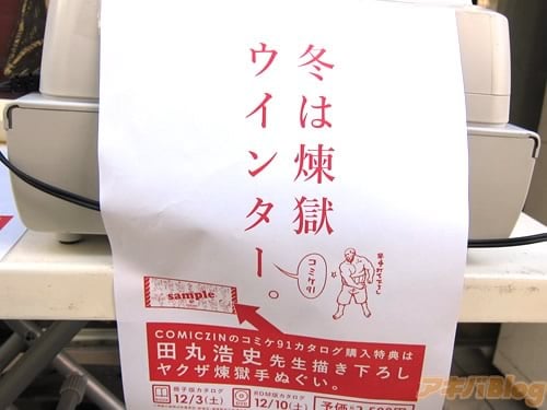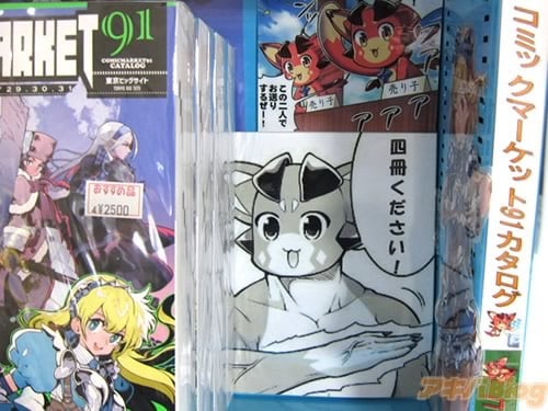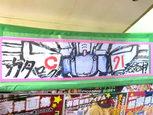 ちなみに、コミケ91といった「数字」にちなんだ売り場展開をしていたのは、直近ではC88でのエリア88(注:このときはカタログ自体がエリア88)や、C86での頭文字D風「アドレナリンどっぱどぱだ!」とかもあった。