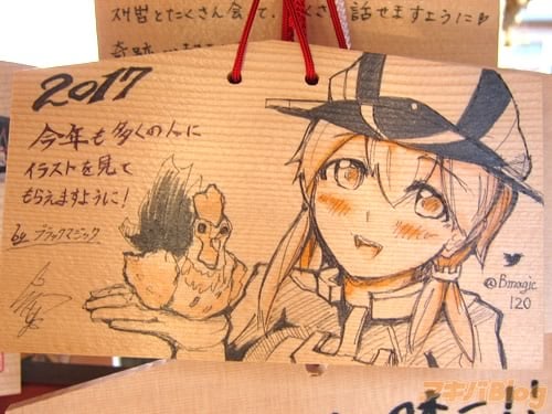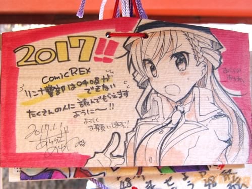 今年の神田明神での痛絵馬は、聖地化した「ラブライブ!」をはじめ、「ガールズ&パンツァー」や「艦これ」などの絵馬が多数で、2008年?から痛絵馬を奉納されている漫画家:おりもとみまな氏は今年も奉納されており、これで(少なくとも)10年連続だったほか、漫画家:あまのがみだい氏、サークル蛸壺屋のTK氏が、2009年奉納からおそらく9年連続の痛絵馬奉納のはずで、痛絵馬を奉納されているプロの漫画家・イラストレーターさんは、今年もたくさんだった。