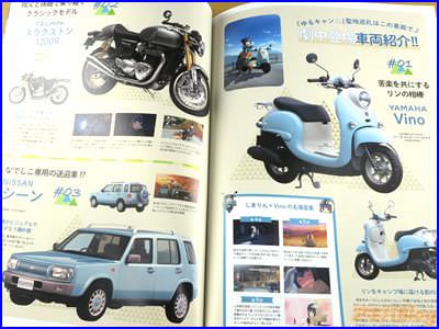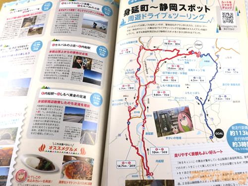 内容は、聖地丸わかりマップや、エリアマップ(山梨南部&静岡、山梨中部、長野)&立ち寄りスポット紹介、モデルコース、あらすじ&キャラクター紹介、作者:あfろ氏&各務原なでしこ役:花守ゆみりさんのインタビュー、キャンプツーリングを解説した「始めようキャンツー!」、劇中に登場した車両紹介、キャンプにオススメのバイク&カーアイテム紹介などなどを掲載した計100ページで、描き下ろし「志摩リン」ステッカーも付いてる(もくじ)。