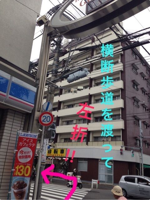 商店街をぬけると、左手にローソンのある交差点に出ます!