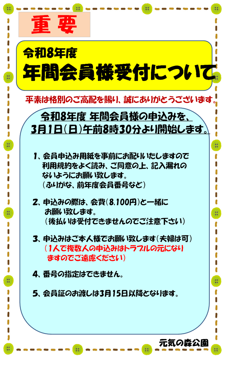 ÎáÏÂ8ǯÅÙ¡¡¥Ñ¡¼¥¯¥´¥ë¥Õ¾ìǯ´Ö²ñ°÷¼õÉդΤªÃΤ餻