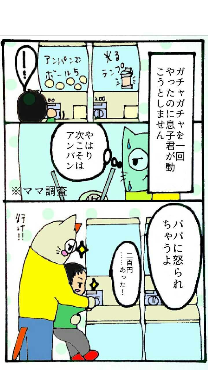 息子君はせっかくアンパンが出たのに気づいてなくて、ガチャガチャを出したり入れたりして遊び始めました。