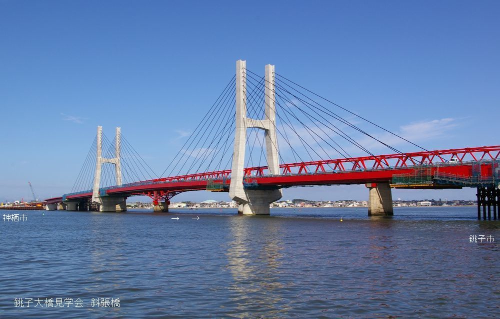 建設コンサルタント業協会の技術者が集合して、銚子大橋掛け替え工事の見学会を実施しました、その(1)です。