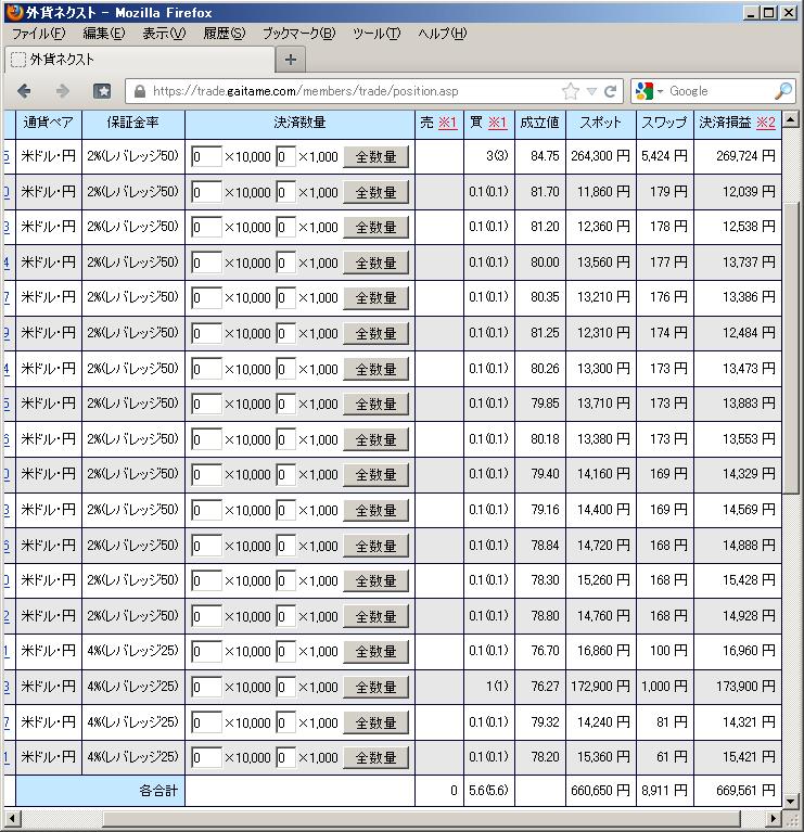 ¥78.18 / 6.6枚L(平均¥82.22) / (¥700,000) / ▲¥258,771