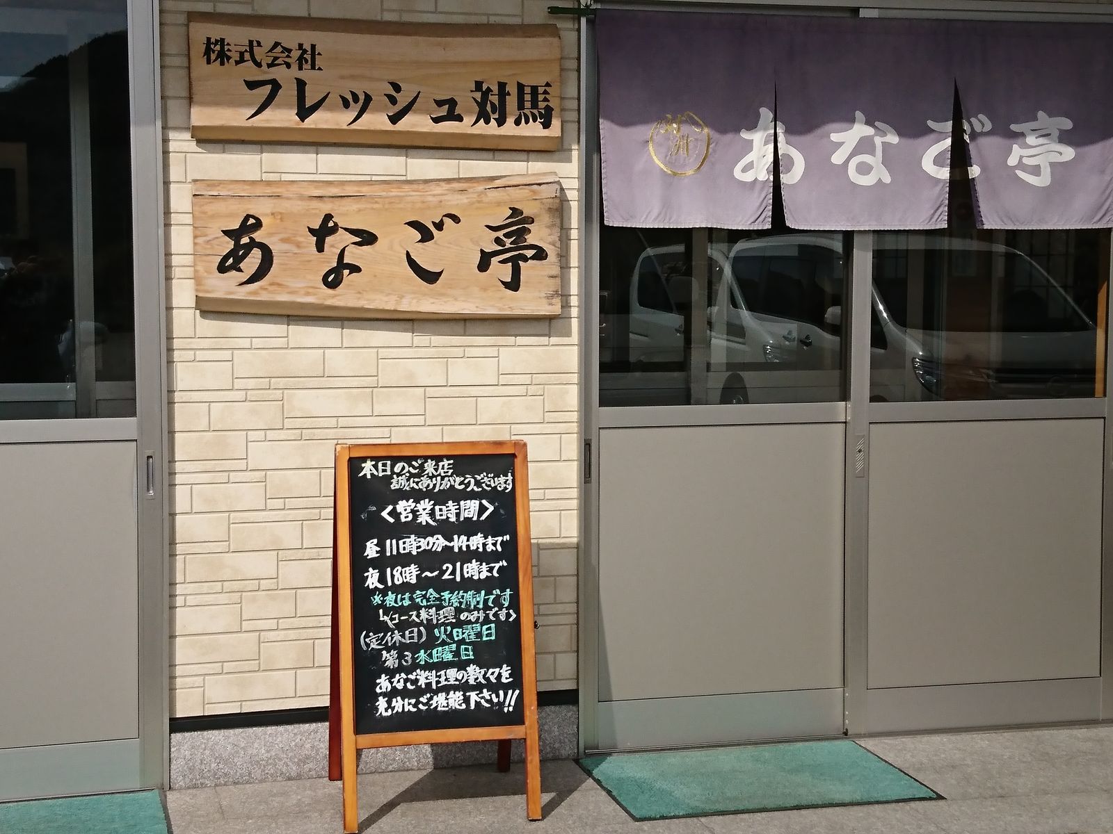 観光も寒いので午前中に荷物整理してお昼は和多都美神社近くのアナゴ亭へ