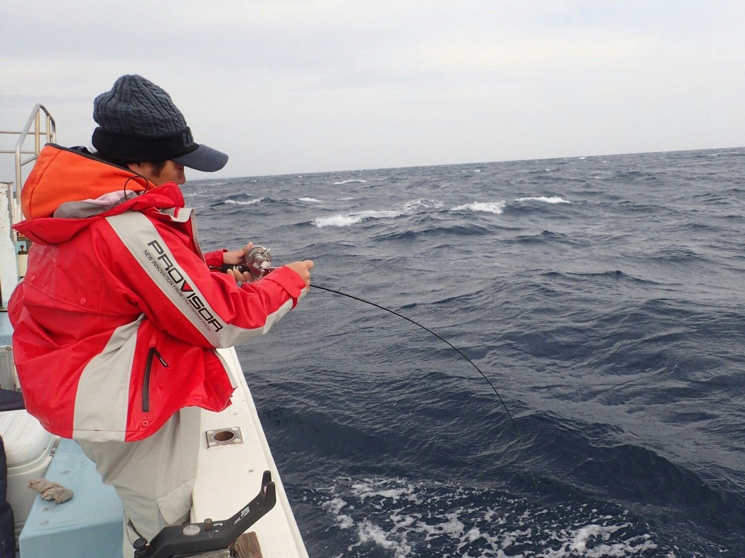 ラインが斜めになり数十メートル沖で空気が浮き上がりドデカいのが浮上