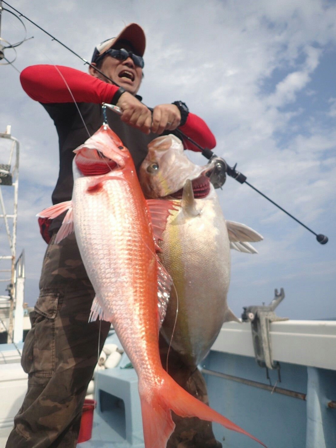 カンパチ8.5kgと大口ハマダイ5kgのダブルヒット