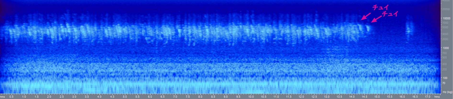↑この録音の14秒目あたり、鳴き止む前に「チュイチュイ」というような声が聞こえます。