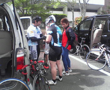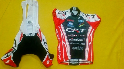 エイスケ君とチャリで富士山を登りに行ったときに競輪SS級前回G1覇者で昨年の賞金王の武田選手の夏ウェアーを分けてもらったよー。がんばってる人の物は力になるよ。
