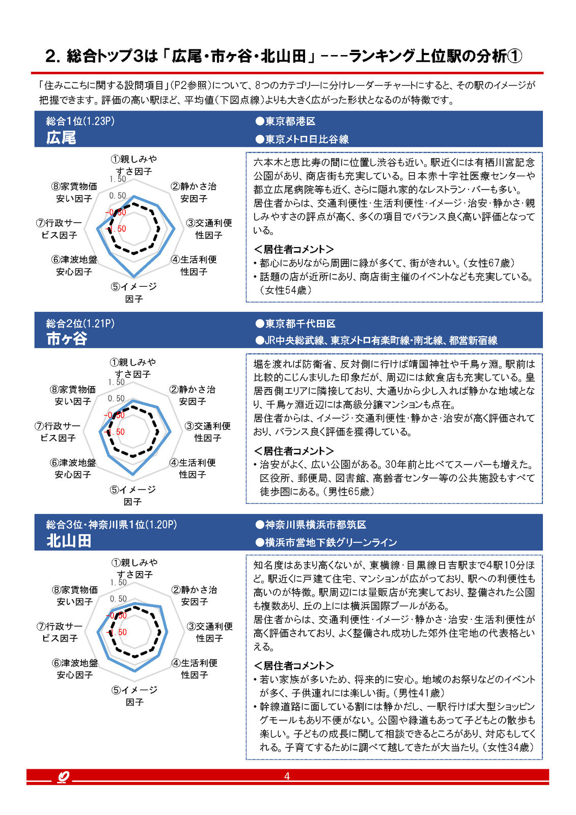 いわゆる住みたい街ランキングに出てくる駅は少なく、希望と現実とは違うと思える結果だった。