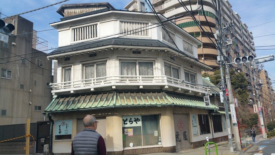 ただ、この日はこのルートではないんです。本音を言うとここを通って古川橋のほうへ行っちゃっても良いと思うのですが、違うルートへと向かいます。途中にはお団子が人気ですぐ売り切れてしまう松島屋と、有名なあのとらやと同名だけど、まったく資本関係のなかった虎屋の建物(*´ω`)。もうだいぶ前から営業はしていないのですが、変わった風貌の建物も相まって未だに見学に来られる方がたまにいらっしゃるようです。