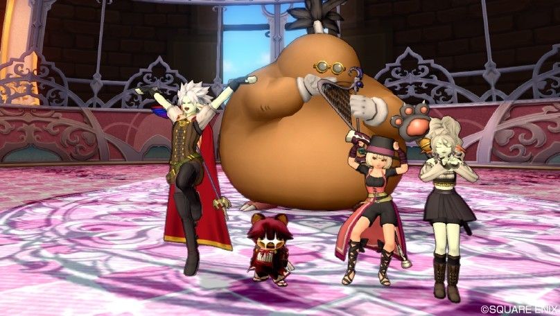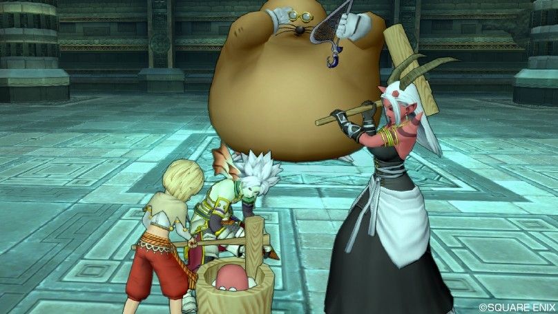 ドン・モグーラの前でチーメンのしょぼたさん(ピンクのカンダタ頭)をしばく