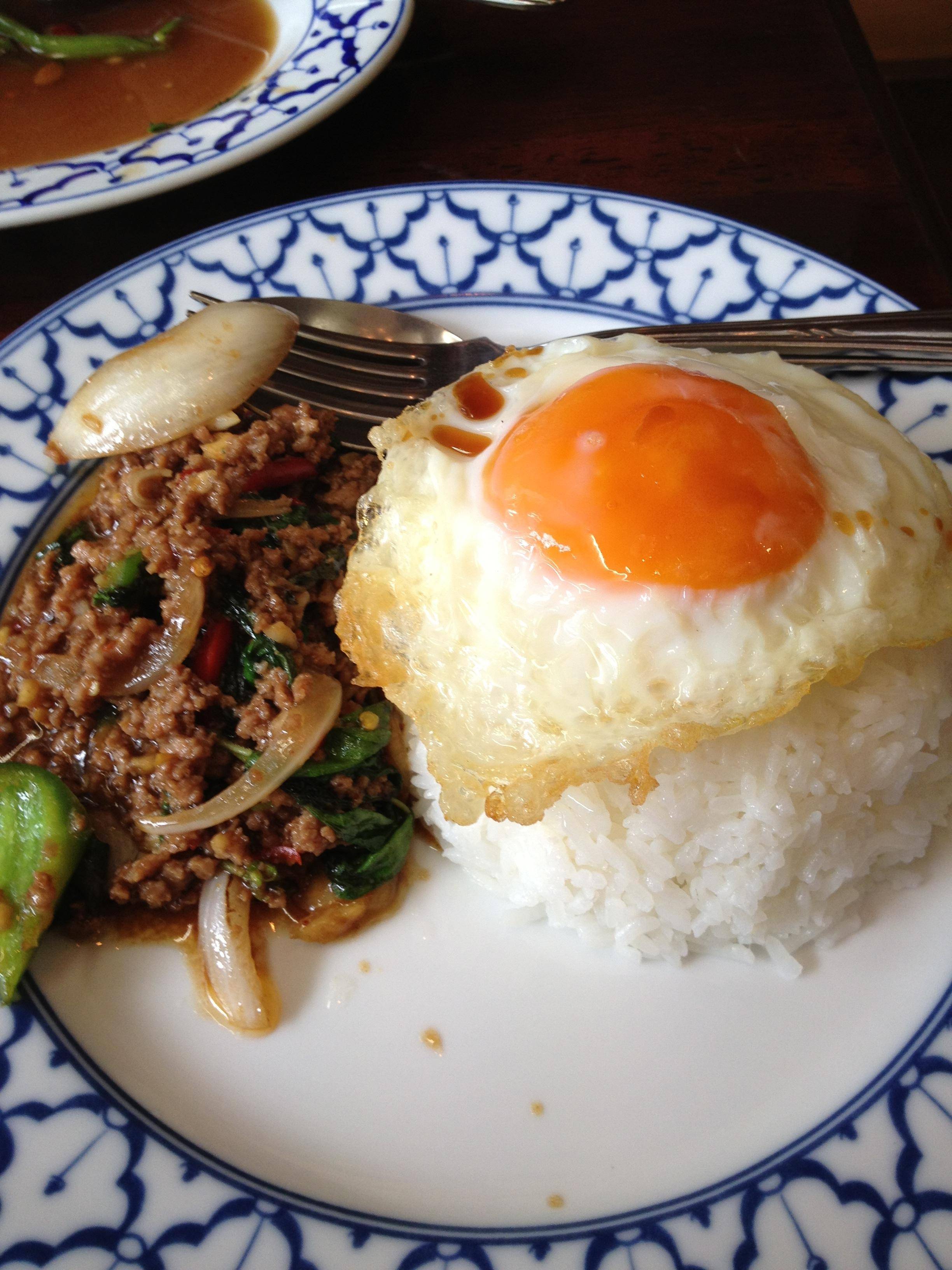 トムヤムクンとガパオ(挽肉ご飯)。