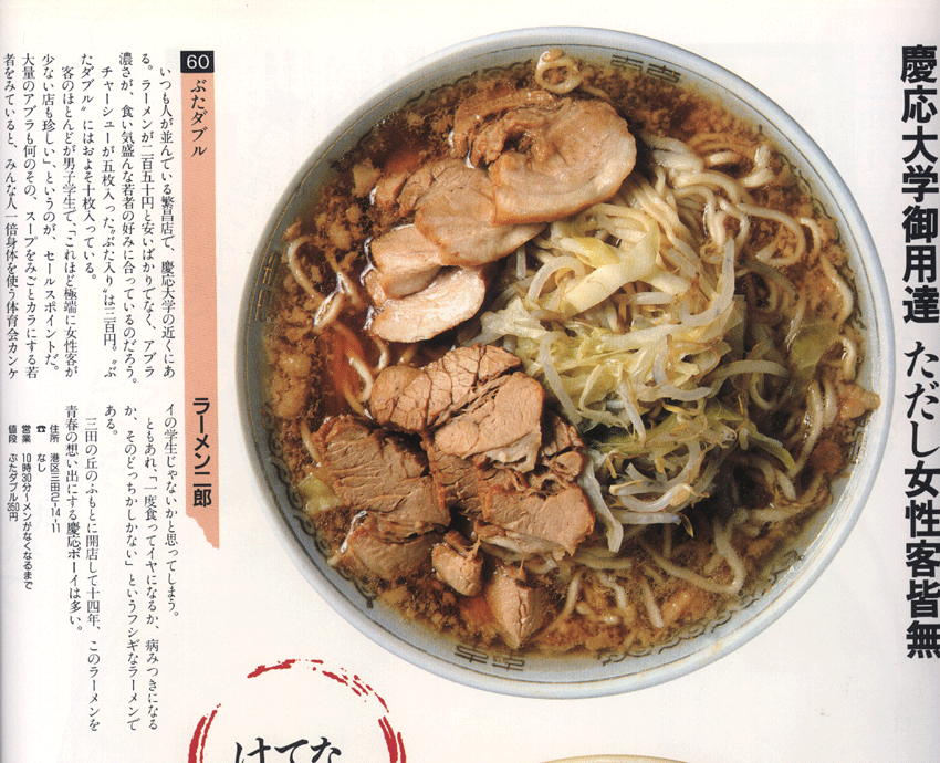 80年代に慶応生だった人が書いてたが、男しか行かないラーメン屋で、