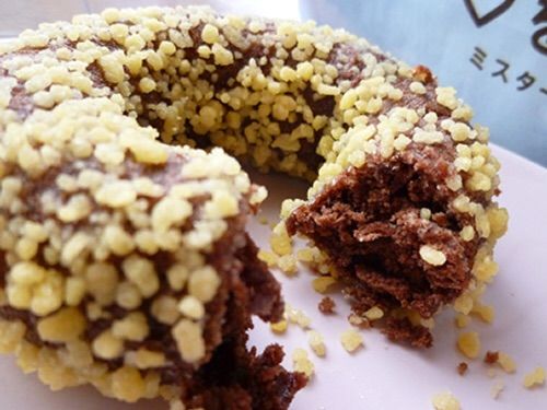 しっとりしたミルクチョコレート風味のドーナツに、カリカリしたクリフピー食感の黄金粒をまぶしたやつ。個人的に調査したところガキの好きなドーナツNo.1である。