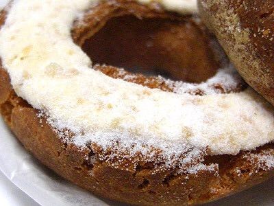 ★クルーラー...cruller、水分の多い生地を油の中に輪の形に絞り出して揚げたもの。(シュー生地を用いるとフレンチ・クルーラーと呼ばれる)