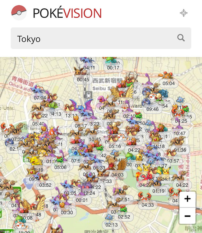 また、ポケモンの出現場所がリアルタイムでわかる「Pokevision」(ポケビジョン)で東京を調べてみたが、やはりドードーだらけだった。繁殖期なのだろうか?