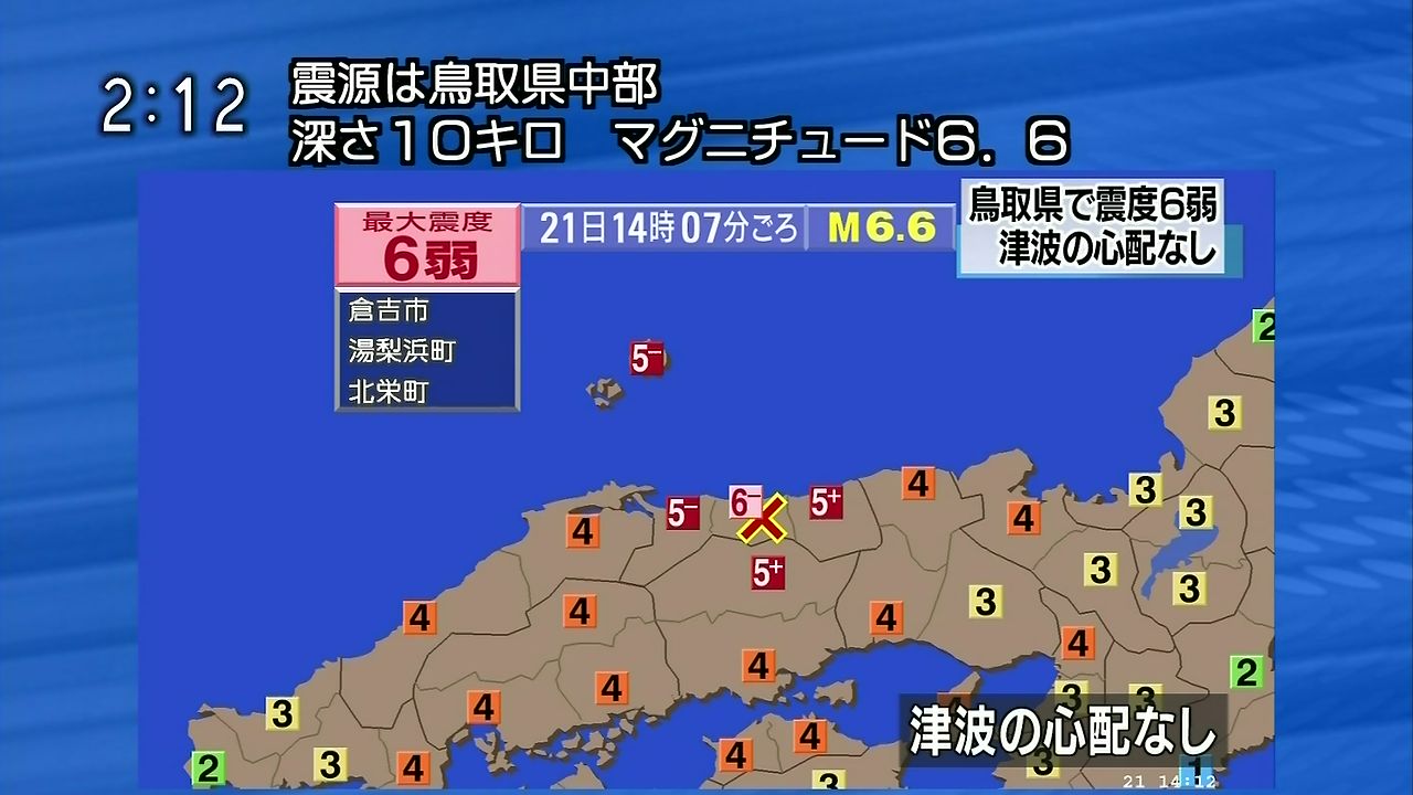 鳥取さっき震度4あったよな