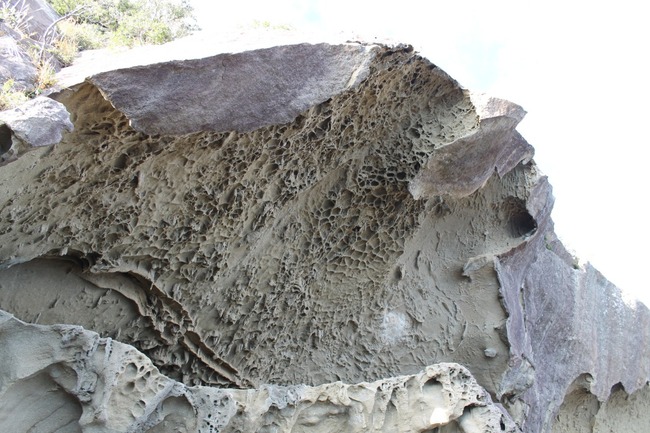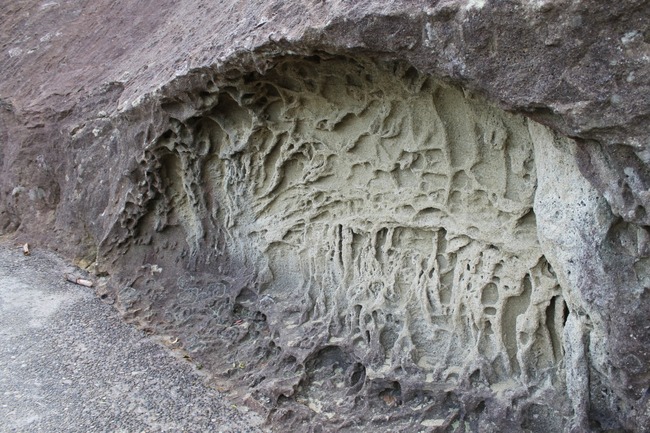 たぶん壁が砂っぽいから風とか波で削られてこうなったんやろうなぁ