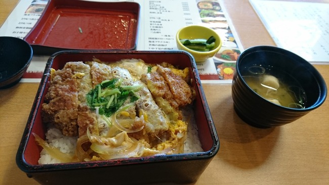 朝はカップ麺、昼はかつ丼食いながら帰った!以上!閉廷!