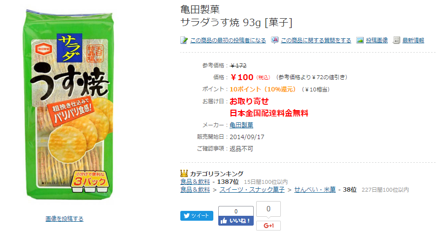 16円の煎餅をゆうパックで明日届けてくれるんやで?
